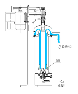 主軸帶動(dòng)轉(zhuǎn)鼓繞自身軸線(xiàn)高速旋轉(zhuǎn),在轉(zhuǎn)鼓內(nèi)形成強(qiáng)大的離心力場(chǎng)。物料由底部進(jìn)料口進(jìn)入轉(zhuǎn)鼓內(nèi),在離心力作用下,迫使物料沿轉(zhuǎn)鼓內(nèi)壁向上流動(dòng)。質(zhì)量輕的液體經(jīng)轉(zhuǎn)鼓上部排液口排出,通過(guò)集液盤(pán)回收;質(zhì)量重的固體沉積在轉(zhuǎn)鼓內(nèi)壁上,形成沉渣層,停機(jī)后人工清除。